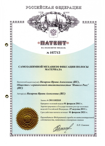 Pic. 4 shows a cross-section of the claimed self-locking mechanism for fixing a strip of material in a compressed state.